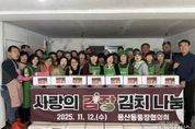 (중앙뉴스타임스 = 방재영 기자) 고양특례시 일산동구 풍산동은 지난 11일, 12일 이틀 동안 풍산동 직능단체 회원들이 직접 담근 김장김치를 소외계층에 전달하는 김장나눔 행사를 진행했다. 이날 소외계층 총 145세대에 김장 김치를 전달해 어느 때보다 따뜻한 이웃 간의 정을 나눴다. 올해 김장김치 나눔 행사는 민관이 협력해 어려운 이웃들에게 따뜻한 겨울을 선물하기 위해 마련된 것으로, 통장협의회, 새마을부녀회 등 2개의 단체와 애니골 상가번영회가 뜻을 모아 추진했다. 통장협의회와 애니골 상가번영회는 애니골 상가번영회 사무실에서 김장김치를 담가 총 85세대에 전달했다. 새마을부녀회는 동 행정복지센터에서 총 60세대에 전달할 수 있는 분량의 김치를 담가 나눔을 실천했다. 풍산동 통장협의회, 새마을부녀회와 애니골상가번영회가 담근 김치는 관내 독거 어르신, 한부모가정, 저소득층 등 소외계층 가구에 고루 전달됐다. 유은숙 풍산동장은 “민관이 협력해 이웃 돌봄 문화가 확산되는 좋은 본보기가 됐다.”며 “앞으로도 다양한 복지자원을 연계해 주민이 함께하는 따뜻한 지역사회를 만들어가겠다.”고 말했다. 최