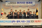 (중앙뉴스타임스 = 방재영 기자) 강원특별자치도시군의회 의장협의회 제258차 월례회가 19일 삼척 쏠비치에서 최익순 협의회장(강릉시의회 의장)의 주재로 열렸다. 이날 월례회에서 최익순 협의회장(강릉시의회 의장)은 그간 활동 상황을 보고받고 현안 정책과제 추진 안건을 토의했으며 ‘동해고속도로 삼척~영덕, 속초~고성구간 건설 촉구 건의안’을 의결했다. 협의회는 국가 기간교통망인 동해고속도로가 관광 수요 증가에 대응하고 지역 접근성 및 물류 체계 개선을 위해 반드시 구축되어야 하는 핵심 인프라임을 강조하며 섬척~영덕 구간과 속초~고성 구간의 건설이 장기간 지연되고 있어 경제적 피해와 지역 발전 제약이 지속되고 있음을 지적했다. 이에 협의회는 두 구간이 완성될 때 동해안권 전체가 하나의 경제·관광·물류 생활권으로 통합되며, 국가 경쟁력 향상과 지역 균형발전, 나아가 북방항로 활성화와 국제 물류흐름 확대에도 역할을 할 수 있다며 ▲정부는 동해고속도로 삼척~영덕, 속초~고성 구간의 건설을 최우선 국책사업으로 추진할 것을 강력히 요구했다.