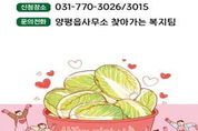 (중앙뉴스타임스 = 방재영 기자) 양평군 양평읍은 12월 31일까지 두 달간 ‘작은 나눔, 큰 기쁨 김장 나눔 사업’을 추진하며, 관내 취약계층 이웃들에게 정성 가득한 김장김치를 전달한다고 13일 밝혔다. 이번 행사는 양평읍지역사회보장협의체, 새마을회, 적십자봉사회, 여성발전위원회 등 지역 단체와 일반 주민들의 기부가 모여 한마음으로 진행되고 있다. 본격적인 겨울을 앞두고 독거어르신, 장애인 가구, 복지 사각지대 대상자 등 어려운 이웃에게 따뜻한 밥상과 마음을 전하는 것을 목표로 하고 있다. 특히 올해는 지역 내 나눔 참여 분위기가 확산되면서, 기부 예정인 김장김치의 양이 지난해보다 두 배 이상 증가할 것으로 예상되어 더 많은 가정에 온정을 전할 수 있을 전망이다. 신호선 양평읍지역사회보장협의체 민간위원장은 “작은 정성들이 모여 어려운 이웃에게 큰 기쁨을 줄 수 있었다”며, “앞으로도 민간단체가 중심이 되어 지속적인 나눔 문화가 이어지길 바란다”고 전했다. 김문희 양평읍장은 “이번 행사는 지역 단체와 주민들이 함께 만든 민관협력의 모범사례”라며, “앞으로도 다양한 복지사업을 통해 이웃이 이웃을 돌보는 따뜻한 양평읍을 만들어 가겠다”고 말했다. 한편, 김장 나