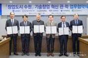 (중앙뉴스타임스 = 방재영 기자) 수원특례시가 경기창조경제혁신센터, 4개 대학과 협력해 대학의 기술창업을 발굴하고, 지원한다. 수원시와 경기창조경제혁신센터, 4개 대학은 30일 시청 상황실에서 ‘창업도시 수원 기술창업 혁신 관·학 업무협약’을 체결하고, 협력을 약속했다. 협약 기관들은 대학의 우수한 연구 성과, 인적 자원을 보유한 우수 기술창업기업을 발굴하고, 기술의 사업화를 촉진하기 위해 협력하기로 했다. 수원시는 수원기업새빛펀드의 수원기업 의무투자 약정액으로 투자를 유치하고, 경기창조경제혁신센터는 기업에 멘토링, 엑셀러레이팅(스타트업이 빠르게 성장하도록 지원), 밋업(투자자 유치 행사), 아이알(IR)데이, 투자 등을 지원한다. 대학교는 실험실 창업·창업 보육기업을 추천한다. 이날 협약을 바탕으로 대학창업 특화 프로그램인 ‘새빛 유-테크(U-Tech).판’을 시작한다. 경기창조경제혁신센터의 엑셀러레이팅 인프라를 활용해 우수한 기술력과 성장 잠재력을 갖춘 창업기업을 발굴하고, 기업의 투자 유치 역량을 극대화하는 프로그램이다. 3대 핵심 목표는 ‘인프라 적극 활용’, ‘선순환 구조 구축’, ‘실질적 투자 집행’이다. 협약식에는 이재준 수원특례시장, 경기창조경