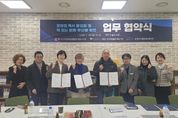 (중앙뉴스타임스 = 방재영 기자) 파주시 한울도서관은 지난 26일 장애 특화 서비스 확대를 위해 관내 주요 유관 기관 및 단체와 업무협약식을 개최했다. 이번 협약에 새롭게 참여한 기관은 ▲경기도시각장애인연합회 파주시지회 ▲마음풍경(발달장애인 방과후활동 제공기관) ▲운정다누림장애인복지관 등 3곳이다. 이로써 한울도서관은 기존 협약 기관인 5곳(경기도지체장애인협의회 파주시지회, 공립특수학교 자운학교, 놀잇다사회적협동조합, 더메이크사회적협동조합 파주지회, 장애인거주시설 조이빌리지)을 포함해, 총 8개의 지역 장애인 유관단체와 협력망을 구축하게 됐다. 한울도서관은 이번 협약을 바탕으로 사업 계획 수립 단계부터 유관단체의 참여를 도모하고, 수혜자의 요구를 반영한 맞춤형 특화 프로그램을 기획·제공할 예정이다. 이재면 교하도서관장은 “이번 업무협약을 통해 지역 장애인 단체와 긴밀히 소통해 장애인의 독서문화 활성화에 기여하겠다”라며, “협력과 연대에 기반한 장애 특화사업이 질적으로 한 단계 더 발전하기를 기대한다”라고 밝혔다.