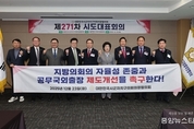(중앙뉴스타임스 = 방재영 기자) 대한민국시군자치구의회 의장협의회 제272차 시도대표회의가 오는 24일 강릉 라카이 컨벤션에서 개최된다. 대한민국시군자치구의회의장협의회(회장 김현기)가 주최하고 강원특별자치도시군의회의장협의회(회장 최익순)가 주관하는 이번 행사는 전국 15개 시·도대표회장을 비롯해 강원특별자치도 도지사, 도의회의장, 도 시·군의회의장, 강릉시장, 시의회 의원 등 150여 명이 참석하여 지방의회간 협력 증진과 공동 현안 해결을 위한 논의의 장을 펼칠 예정이다. 한편, 대한민국시군자치구의회의장협의회는 전국 226개 시·군·자치구 의회의 의장들로 구성된 협의체로서, 지방의회의 위상 제고와 지방자치 실현을 위한 다양한 활동을 전개하고 있다.