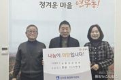 (중앙뉴스타임스 = 방재영 기자) 수원시 장안구 연무동은 지난 19일 상광교상인회 소속인 광교헌농원, 백운주말농장, 폭포농원, 형제농원, 자선농원 5개소가 행정복지센터를 방문해 어려운 이웃을 위한 성금 150만원을 기탁했다고 밝혔다. 광교헌농원, 백운주말농장, 폭포농원, 형제농원, 자선농원은 평소에도 광교산을 찾는 등산객과 주민들에게 건강한 먹거리를 제공하며 지역 경제 활성화에 기여해 왔으며, 이번 성금 기탁을 통해 지역 사회의 든든한 후원자로서의 면모를 보여주었다. 기탁식에 참석한 상인회 관계자는 “작은 정성이지만 우리 주변의 어려운 이웃들이 희망을 잃지 않고 살아가는 데 조금이나마 도움이 되길 바란다”며, “앞으로도 지역 사회를 위한 나눔 활동에 지속적으로 관심을 갖겠다”고 소감을 전했다. 공순정 연무동장은 “모두가 힘든 시기임에도 선뜻 큰돈을 기부해 주신 광교산 상인회분들께 깊이 감사드린다”며 “기탁해 주신 소중한 성금은 관내 복지 사각지대에 놓인 취약계층을 위해 투명하고 뜻깊게 사용하겠다”고 말했다.