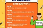 (중앙뉴스타임스 = 방재영 기자) 안성시는 오는 18일 오후 6시까지 시민참여위원회 분과별 제안 정책에 대한 시민 의견을 수렴한다고 1일 밝혔다. 이번 시민 의견 수렴은 시민참여위원회 정책 발표회를 앞두고 진행하는 사전심사로, 분과별 제안 정책에 대한 시민 공감도를 확인하여 추후 현장심사 결과와 함께 최종 우수 제안 정책을 선정하는 데 활용된다. 7개 분과로 구성된 안성시 시민참여위원회는 소속 위원의 다양한 경험과 지속적인 논의를 바탕으로 안성시 시정에 반영할 정책 연구 활동을 추진해 왔으며, 이달 정책 발표회를 통해 각 분과에서 도출한 정책을 제안하여 그간 활동의 결실을 맺을 예정이다. 정책 발표회를 통해 각 분과에서 제안할 정책 주제는 ▲Safety 안성, 시민이 안전한 도시 만들기(공공혁신분과) ▲안성시 평생학습도시에 따른 평생교육 강사 플랫폼 구축(교육특화분과) ▲안성시 한우산업 탄소중립 모니터링 시스템 구축(미래농업분과) ▲안성시민을 위한 태양광발전 5개년 계획(생태도시분과) ▲전통문화 예술인들을 위한 창작공간 확보(문화도시분과) ▲안성, 사랑 흔들바위 관광지 조성(문화도시분과) ▲더불어 이동하는 자유로운 안성(생활복지분과) ▲안성시 기업지도와 멘토