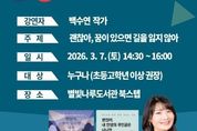(중앙뉴스타임스 = 방재영 기자) 2026년 새학기 독서문화진흥 프로그램 ‘백수연 작가의 진로 특강’이 7일 별빛나루 도서관 계단형 열람석(북스텝)에서 현장 강연으로 진행된다. 강연에 참여한 청소년 가운데 선착순 10명에게는 백 작가의 저서 ‘괜찮아, 꿈이 있으면 길을 잃지 않아’를 증정한다. 백수연 작가는 청소년지도사이자 작가, 강연가로 활동하며 청소년이 ‘진학’보다 ‘진로’를 고민하고, ‘성공’보다 ‘성장’을 지향하며, ‘미래’뿐 아니라 ‘현재’의 행복을 스스로 선택할 수 있도록 돕는 메시지를 꾸준히 전해 왔다. 이번 강연에서는 학업과 진로, 인간관계, 자기 주도 역량, 사회참여 등 청소년의 삶과 맞닿은 주제를 바탕으로 새 학기를 준비하는 방법을 함께 나눌 예정이다. 별빛나루 도서관은 관내 청소년은 물론 청소년을 지지하고 응원하는 보호자와 지역 주민도 함께 참여할 수 있도록 프로그램을 운영하며, 관심 있는 군민의 많은 참여를 당부했다. 이성희 교육체육과장은 “이번 독서 문화 진흥 프로그램을 통해 청소년들의 독서에 관심을 높이고, 새 학기의 시작을 보다 의미 있게 준비할 수 있기를 바란다”라며, “청소년을 응원하는 분들도 강연을 함께 들으며 공감과 응원의