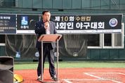 (중앙뉴스타임스 = 방재영 기자) 수원특례시의회는 19일 황구지천야구장에서 열린 ‘제10회 수원컵 전국 사회인 야구대회 개회식’에 참석해 선수들을 격려했다. 이번 대회는 경기일보가 주최하고 수원시야구소프트볼협회가 주관했으며, 전국 사회인 44개 팀이 참가해 뜨거운 열정 속에 경기를 펼쳤다. 이날 행사에는 이재식 의장, 김정렬 부의장을 비롯한 오세철 예산결산특별위원장, 김동은 의원이 함께해 선수단을 응원하며, 전국 각지에서 모인 야구 동호인들과 교류의 시간을 가졌다. 이재식 의장은 축사에서 “직장과 가정을 오가며 바쁜 일상 속에서도 야구에 대한 열정으로 최선을 다하는 선수 여러분께 진심 어린 박수를 보낸다”며 “이번 대회가 지역과 세대를 넘어 우정을 나누는 축제가 되길 바란다.”고 말했다.