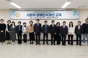 (중앙뉴스타임스 = 방재영 기자) 안양시의회는 19일 시의회 소회의실에서 시의원과 사무국 직원을 대상으로 사회적 장애인식개선 교육을 실시했다. 이번 교육은 '장애인복지법'에 따른 법정의무교육으로, 장애인에 대한 사회적 편견과 차별을 해소하고 상호 존중하는 포용적인 공직 문화를 조성하기 위해 마련됐다. 교육에 참석한 시의원과 직원들은 진지한 태도로 교육에 임하며 전 과정을 수료했다. 이날 교육에는 바꿈교육원 원장이자 (사)장애인인권센터 교육 강사로 활동 중인 이미영 강사가 초빙돼, ‘서로의 다름을 존중하고 함께하는 사회를 꿈꾼다’를 교육 목표로 장애의 정의와 유형에 대한 이해, 차별 금지의 중요성, 장애 인식 전환 등에 대해 강의했다. 박준모 의장은 “이번 교육이 의원과 직원들이 장애에 대한 올바른 인식을 갖고 공직자로서의 기본 역량을 강화하는 계기가 되기를 바란다”며 “앞으로도 장애인이 차별받지 않고 시민 모두가 조화롭게 어우러지는 건강한 안양시를 만들기 위해 의회 차원에서 지속적으로 노력하겠다”고 밝혔다.