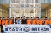 (중앙뉴스타임스 = 방재영 기자) 파주소방서는 3월 27일 오전 10시, 파주시 국립민속박물관에서 현장 간부회의 'SOS(Spot On Safety)'를 처음으로 실시했다. 주요 소방대상물을 직접 방문해 재난 위험요소를 확인하고 개선방안을 도출하기 위해 마련된 이번 회의는, 서류 중심의 기존 방식에서 벗어나 현장에서 대상물의 실제 안전관리 상태를 점검하고 잠재적 위험요인을 사전에 발굴하는 새로운 형태의 현장 밀착형 회의다. 최근 관내 소방대상물은 첨단시설·박물관·대형 물류창고 등 복합화·대형화 추세가 뚜렷하다. 그러나 기존의 정형화된 보고 방식으로는 데이터와 현장 실태 간 괴리가 발생해 잠재적 위험요소를 사전에 파악하는 데 한계가 있었다. 파주소방서는 특히 대형화·복합화된 시설 증가로 재난 위험성이 커지는 상황에서 현장 중심 대응체계를 강화하기 위해 이 새로운 회의 방식을 기획했다. 이날 회의는 대상물 사전분석, 현장 확인, 관계자 의견 청취, 위험요소 토론 등 단계별로 진행됐다. 아울러 박물관 큐레이터의 안내로 전시시설과 수장고 등을 둘러보며 주요 유물과 시설 특성에 대한 설명을 듣는 기관 견학도