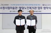 (중앙뉴스타임스 = 이광운 기자) 경기도 수원시립미술관과 수원시 팔달노인복지관은 5일 관내 시니어의 문화예술 향유 활성화를 위한 업무협약을 체결했다. 수원시립미술관에서 열린 협약식에는 남기민 수원시립미술관장, 윤학수 팔달노인복지관장을 비롯한 양 기관 관계자들이 참석했다. 두 기관은 이번 업무협약을 계기로 지역 시니어의 심리ㆍ정서적 건강을 지원하고 문화예술 참여를 확대하기 위한 협력 체계를 구축하기로 했다. 이번 협약의 주요 내용은 △ 사회공헌 및 공익활동 활성화에 관련된 사회복지 서비스 관련 정보 △ 수원시립미술관 공공프로그램 운영 활성화를 위해 인적·물적 자원 네트워크 적극 활용 △ 주민의 욕구와 부합하는 사업 제안 및 공동개발 및 연구 활동 등을 약속했다. 협약에 따라 팔달노인복지관은 4월부터 진행되는 수원시립미술관 웰니스 프로그램 '마인딩: 마주하기'에 참여할 예정이다. 프로그램은 수원시립미술관과 홍익대학교 공공디자인연구센터 및 교육대학원(미술치료상담)이 공동 기획한 사회적 처방 개념의 아트 테라피인 'SUMA 웰니스'이다. 양 기관은 향후에도 지속적인 협력을 통해 다양한 문화프로그램 참여와 전시 관람 연계 등을 이어갈 계획이다. 수원시립미술관 남기민