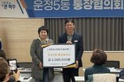 (중앙뉴스타임스 = 방재영 기자) 파주시 운정5동 통장협의회는 지난 11일 운정5동 행정복지센터를 방문해 이웃 돕기 성금 200만 원을 기탁하며 따뜻한 연말 나눔을 이어갔다고 전했다. 운정5동 통장협의회는 올해 5월, 영남 지역 산불 피해 복구 지원을 위해 성금을 전달한 데 이어, 연말에도 지역 취약계층을 위한 성금을 마련하며 지속적으로 나눔 활동을 실천하고 있다. 이번 기탁 성금은 겨울철 한파와 생활고로 어려움을 겪는 가구에게 실질적인 도움이 될 수 있도록 복지사업에 활용될 예정이다. 반은주 운정5동 통장협의회장은 “회원들이 함께 뜻을 모아 마련한 성금이 어려운 이웃에게 작은 힘이 되길 바란다”라고 말했다. 이창훈 운정5동장은 “통장협의회의 꾸준한 나눔 실천이 지역사회를 더욱 따뜻하게 만들고 있다”라며 “기탁된 성금은 겨울철 어려움을 겪는 가구에 온기를 전하는 데 도움이 되도록 하겠다”라고 전했다.