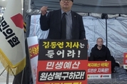 (중앙뉴스타임스 = 방재영 기자) 경기도의회 보건복지위원회 윤태길 의원(국민의힘, 하남1)은 28일 도의회 1층 로비를 찾아, 김동연 지사의 민생예산 대규모 삭감에 맞서 단식 투쟁 중인 백현종 국민의힘 대표의 1인 시위를 지지하며 연대 의지를 밝혔다. 윤 의원은 “김동연 지사가 선택한 방식은 재정건전성이 아니라 도민을 가장 먼저 희생시키는 ‘약자 예산 삭감’”이라며 “어르신 돌봄, 장애인 지원, 아동·청소년 복지 등 하루를 버티는 데 꼭 필요한 예산부터 잘라낸 것은 명백한 도정 실패”라고 강하게 비판했다. 이어 윤 의원은 “경기도지사 비서실장의 행정사무감사 거부 사태처럼 경기도 집행부가 기초적인 원칙조차 지키지 않는다면, 결국 피해는 고스란히 도민에게 돌아간다”며 “민생예산을 되살려내는 것이 지금 도정이 해야 할 유일한 책임”이라고 지적했다. 윤 의원은 특히 예결위원으로서의 책임을 강조하며 다음과 같이 밝혔다. “도민 한 사람 한 사람의 일상을 지키는 예산을 빼앗는 것은 결코 용납할 수 없다. 예결위원으로서 민생예산을 반드시 원상 복구시키겠다. 이것이 도민을 위한 정치이며, 경기도가 다시 바로 서는 길이다.”며 강조했다. 끝으로 윤 의원은 “다시는 이런 폭력