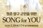(중앙뉴스타임스 = 방재영 기자) 양구문화재단은 다가오는 봄을 맞아 양구군민의 문화 향유 기회를 확대하고 지역에 활력을 불어넣기 위해 2월 기획 콘서트 ‘SONG FOR YOU’양구군민 콘서트를 개최한다. 이번 공연은 오는 2월 28일 오후 5시, 양구문화체육회관에서 열리며, 남녀노소 모두에게 사랑받는 국내 최정상급 아티스트들이 무대를 꾸밀 예정이다. 출연진으로는 독보적인 가창력으로 ‘미스트롯’초대 진(眞)에 오른 송가인과 ‘미스터트롯2’에서 깊은 감성으로 주목받은 트롯 샛별 송민준이 참여해 세대를 아우르는 감동의 무대를 선사한다. 이번 공연은 예매 시작과 동시에 군민들의 뜨거운 관심을 받았다. 1차 예매가 시작된 당일 전체 좌석의 80%가 넘는 예매율을 기록하는 등 높은 호응을 보이며, 군민 문화 향유에 대한 수요와 기대감을 다시 한 번 확인하는 계기가 됐다. 공연 관람료는 전석 12000원이지만, 관람객에게는 현장에서 10000원 상당의 양구사랑상품권을 환급해 실질적으로 2000원의 관람료로 공연을 즐길 수 있다. 티켓 예매는 2단계로 진행된다. 1차 예매는 2월 10일부터 22일까