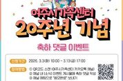 (중앙뉴스타임스 = 이광운 기자) 여주시가족센터는 개소 20주년을 맞아 시민과 함께하는 연중 이벤트를 운영하며, 그 첫 번째 프로그램으로 ‘20주년 축하 댓글 이벤트’를 오는 3월 3일부터 13일까지 진행한다고ㅛ 27일 밝혔다. 이번 이벤트는 여주시가족센터 카카오톡 채널을 통해 참여할 수 있다. 센터 개소 20주년을 축하하는 메시지를 댓글로 남기면 추첨을 통해 소정의 선물을 제공하며, 여주시민이라면 누구나 참여 가능하다. 여주시가족센터는 이번 20주년 기념사업을 단발성 행사에 그치지 않고 시민이 직접 참여하는 연중 프로그램으로 운영할 계획이다. 이를 통해 지난 20년간 지역사회와 함께해 온 가족센터의 의미를 공유하고 다양한 가족이 일상 속에서 자연스럽게 기념사업에 참여할 수 있도록 할 예정이다. 올해는 ▲4월 ‘20’을 함께 축하하는 가족 사연 이벤트 ▲5월 센터 개소일과 생일이 같은 시민을 찾는 ‘6월26일 생일 친구 찾기’ ▲6월 20주년 축하 영상 공모전 ▲7월 '여주시 가족의 바람을 잇다' 설문조사 ▲9월 가족 추억 소환 공모전 등 시민 참여형 프로그램을 순차적으로 운영할 예정이다. 또한, 연중 이벤트를 통해 모인 시민의 이야기와 가족의 변화 사례는